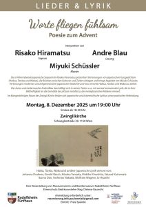 Im klangmächtigen Raum der Zwingli Kirche finden sich japanische und österreichische Lyrik zu einer poetischen Verbindung.