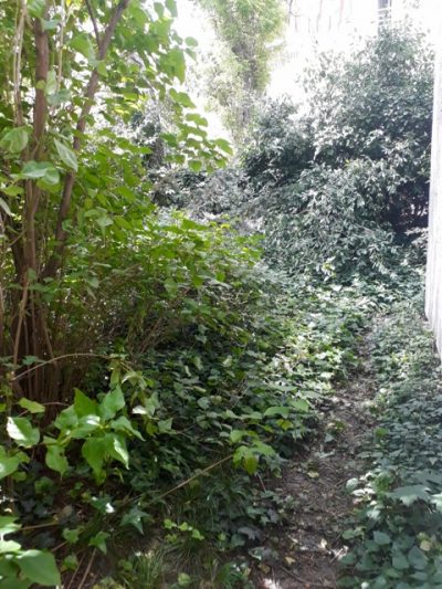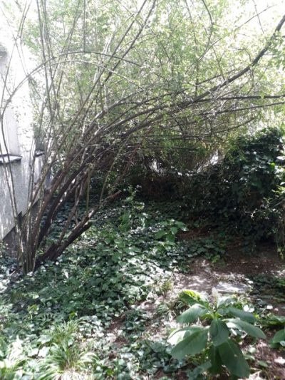 Verwunschen, verwachsen und verzaubert liegt unser Garten verborgen hinter Dornenhecke und Fliederkronen in U-förmiger Gestalt rund um unser Gemeindegebäude. Senfbäume, Disteln und Stechpalme ragen verschlungen und gerade in die Höhen, Brombeere und Wein wachsen, gedeihen und erobern Stück für Stück was vor ihnen liegt. Das Summen der Wespen und der Bienen hat seinen Platz im Orchester des Gartens gefunden, ebenso wie das Zwitschern der Amseln und Spatzen, das Gurren der Tauben, das sanfte Wiegen und Rascheln der Blätter im Wind, und im Hintergrund das Rauschen des Stadtverkehrs, welches wie Meereswellen im gleichmäßigen Takt auf und ab wiegt.